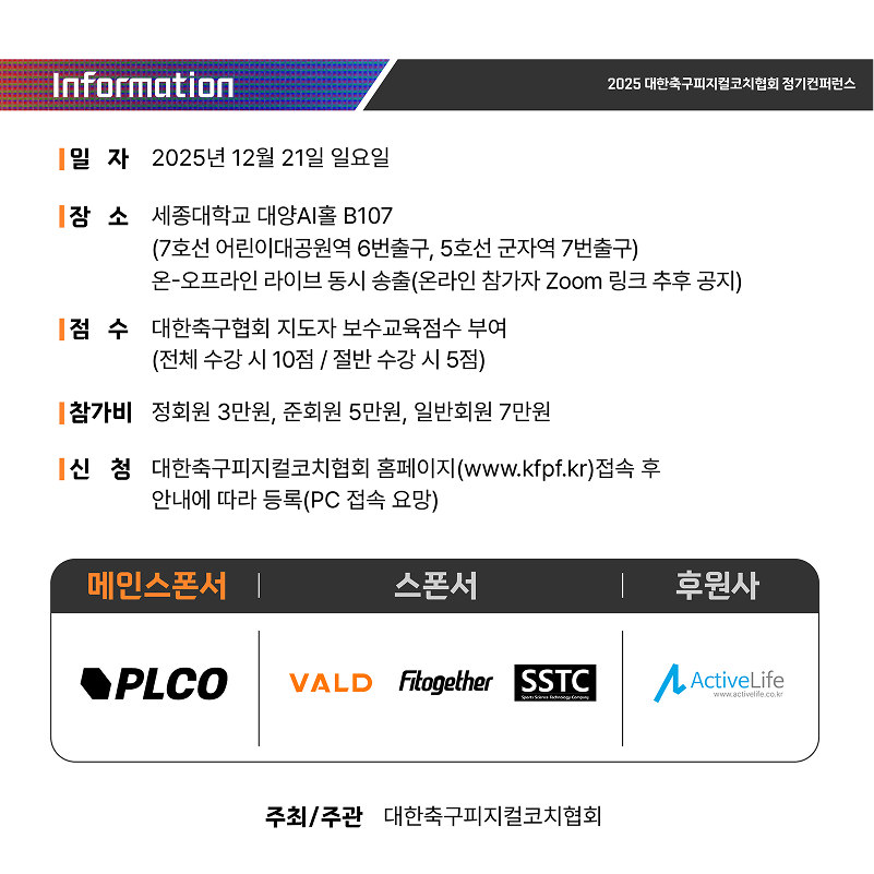 2025년 대한축구피지컬코치협회 정기 컨퍼런스가 개최됩니다.