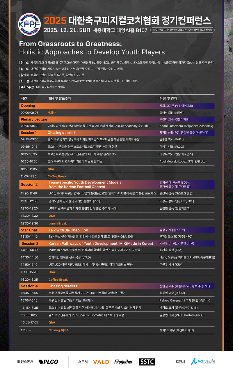 축구 피지컬 코칭 분야의 핵심 흐름을 한 자리에서 확인할 수 있는 공식 행사로,