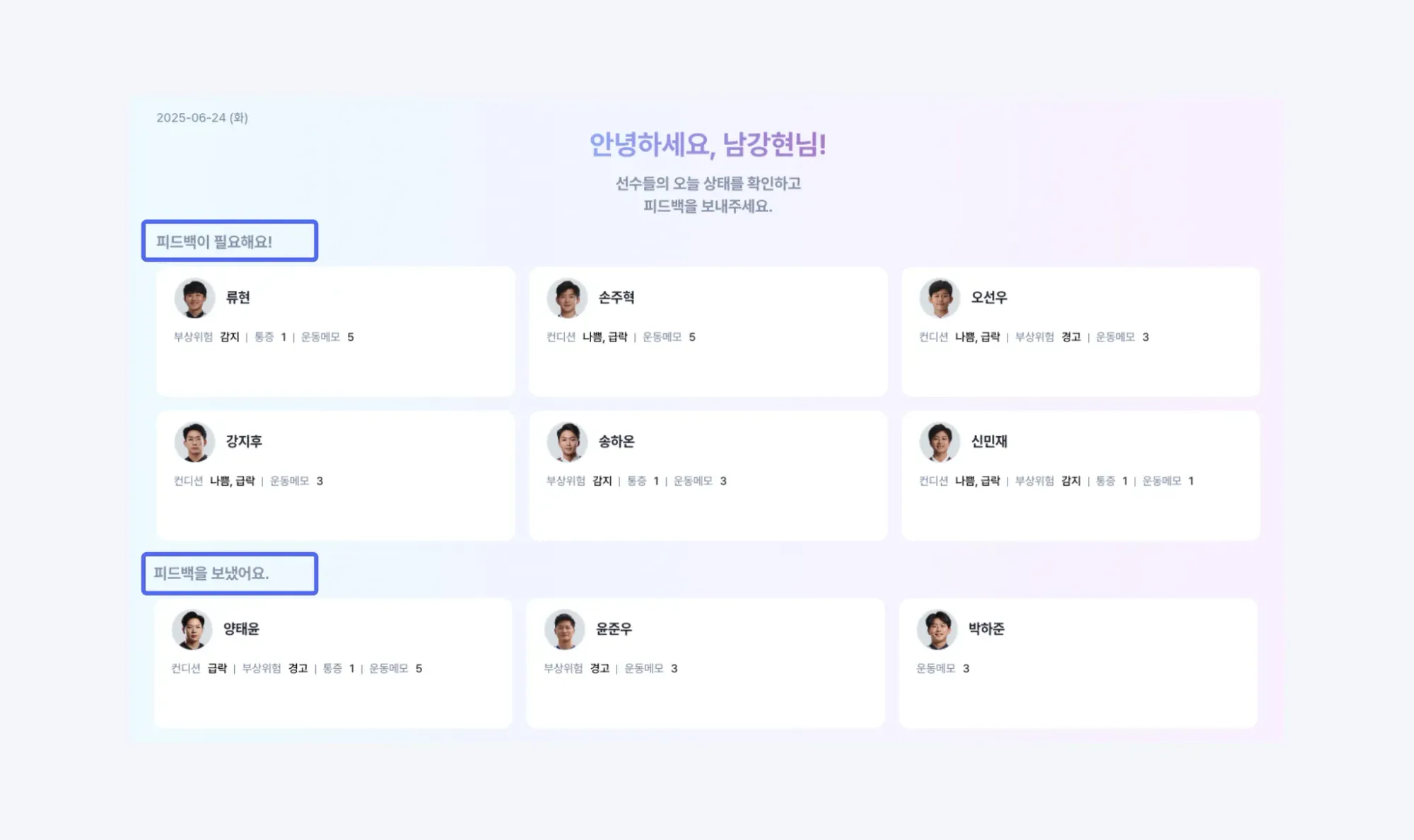 → ‘피드백을 보냈어요.’ 영역에서 선수 목록을 확인할 수 있어요.