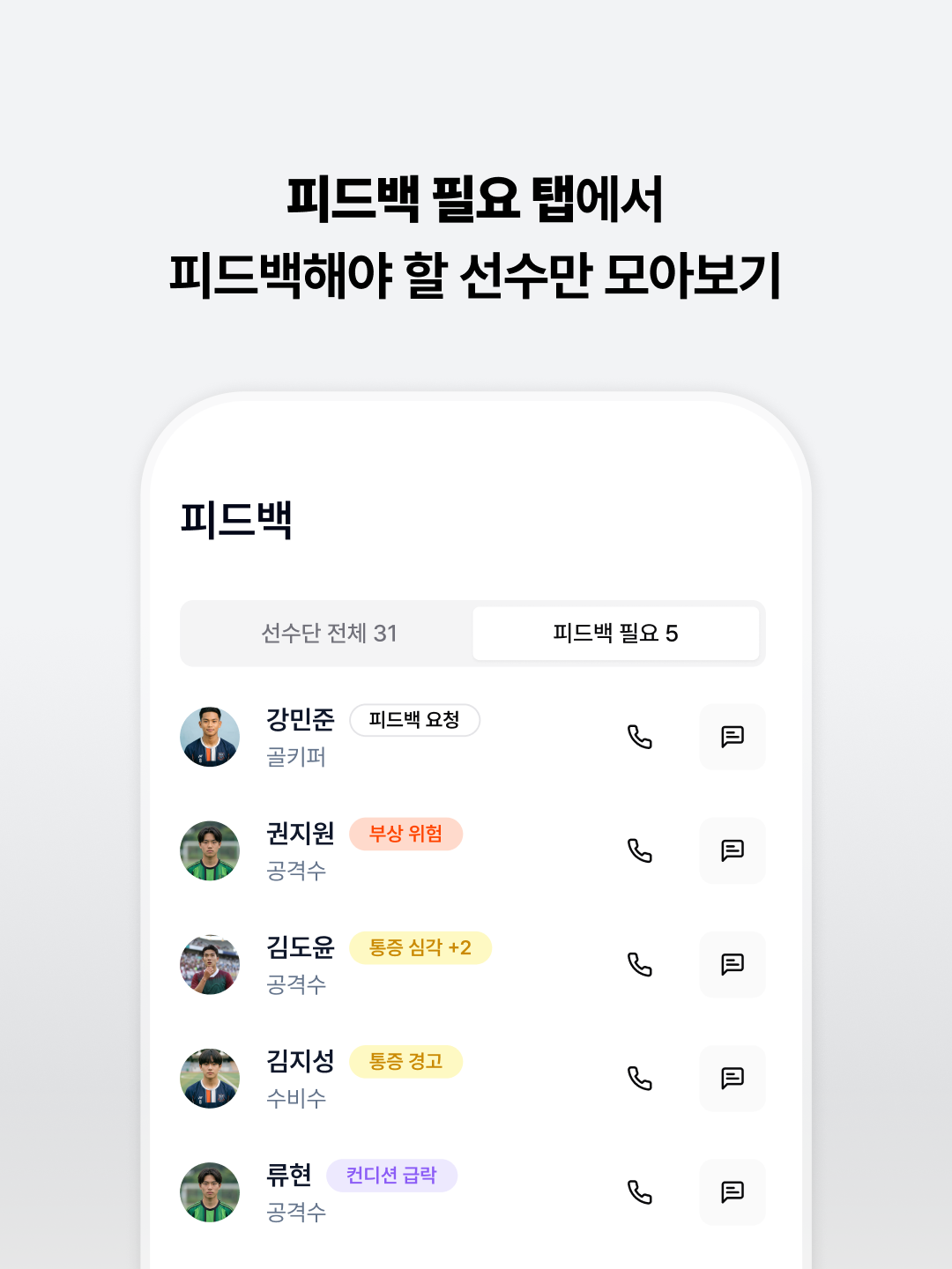지금 바로 확인해야 할 선수만 모아보는 '피드백 필요' 탭