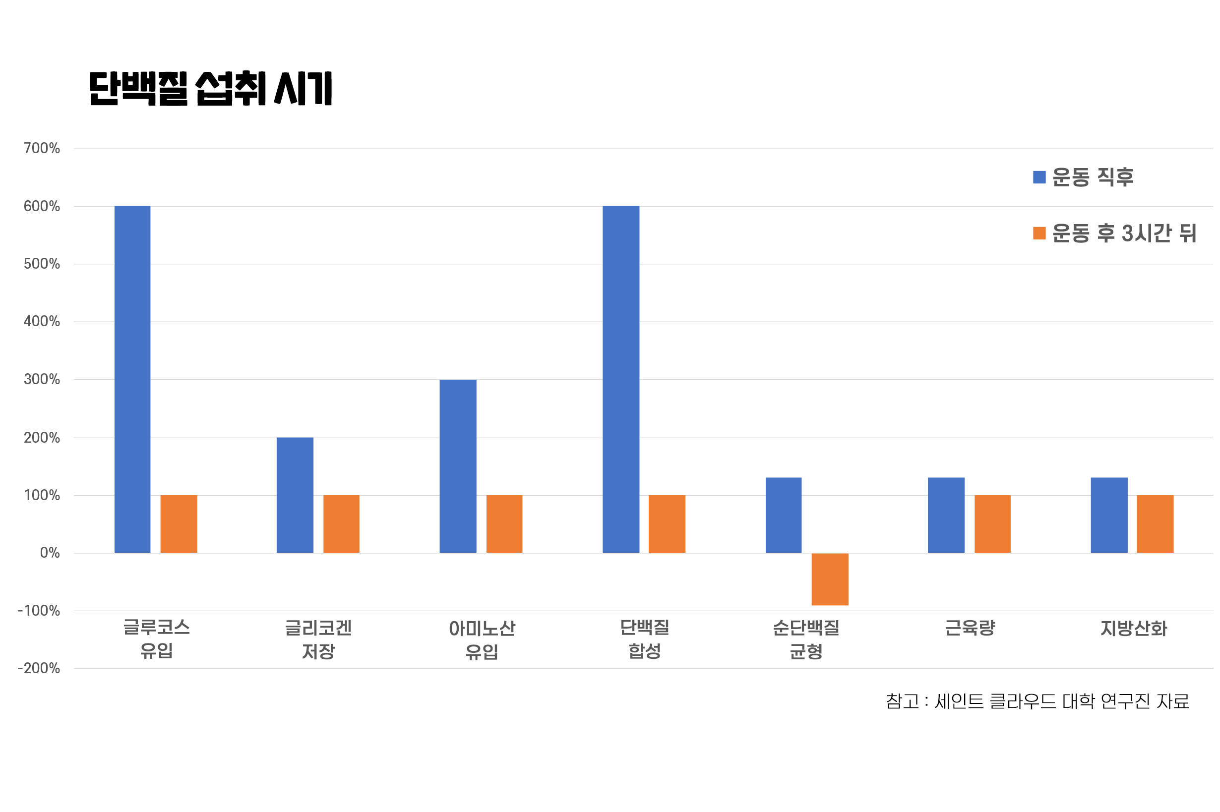 3가지 단계를 이해하면서 지도자들은 선수들에게 회복을 권장해야 합니다. 단순히 어떤 것을 먹으라는 것이 아닌 언제 먹어야 하는지를 더 중요시 해야 한다는 의미입니다. 아래의 간단한 연구에서 그 이유를 알아볼 수 있습니다.