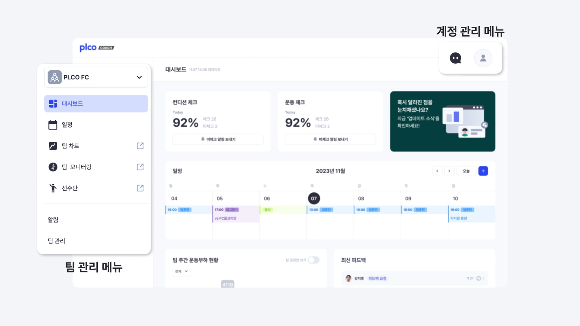 새로워진 플코 코치 서비스를 통해 보다 원활한 팀 운영을 경험해 보세요!