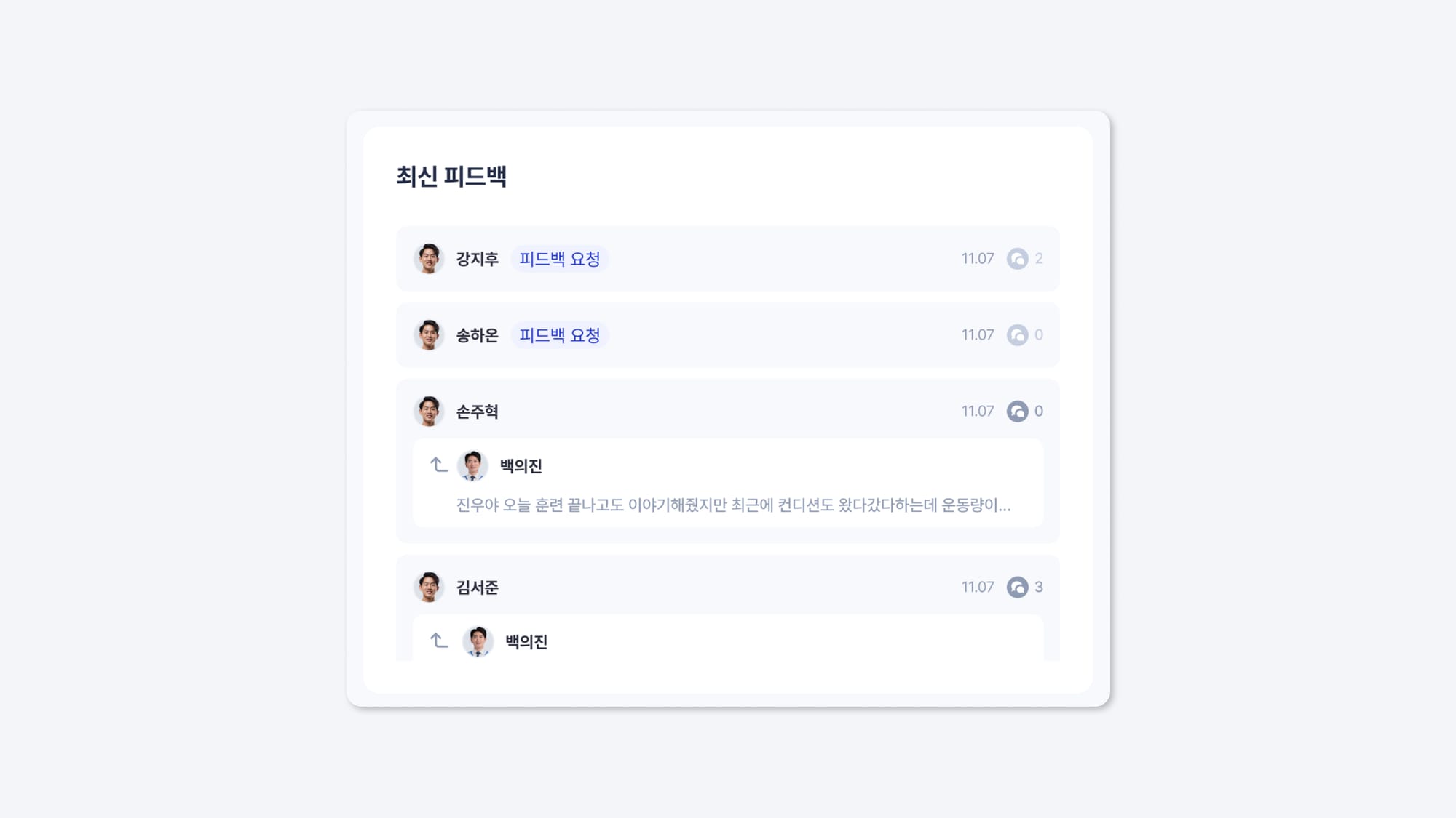 • 지도자님이 선수에게 피드백을 작성한 경우 피드백 내용이 보여집니다.