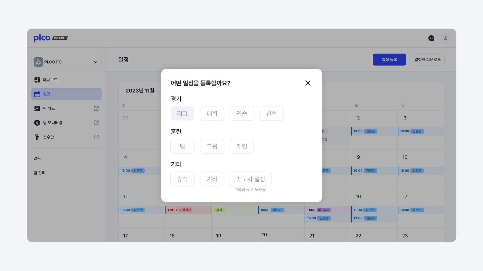 다양한 종목과 환경에서도 활용 가능하도록 일정 타입을 확대했습니다.