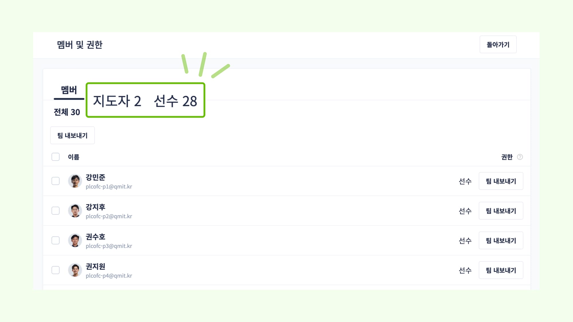 그동안 지도자는 관리자 권한으로, 선수는 멤버 권한으로 명칭이 구분되어 있었어요.