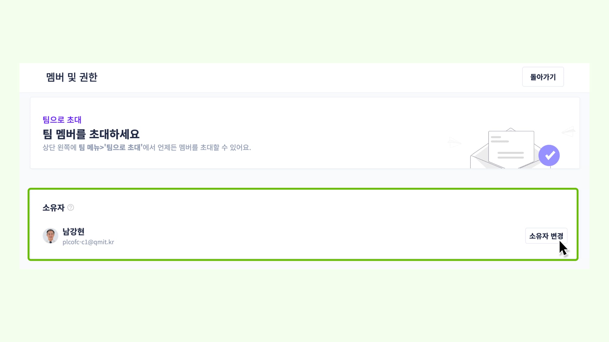 소유자를 바꾸고 싶다면, 멤버 목록에서 찾을 필요 없이 [소유자 변경] 버튼 하나만 누르면 돼요.