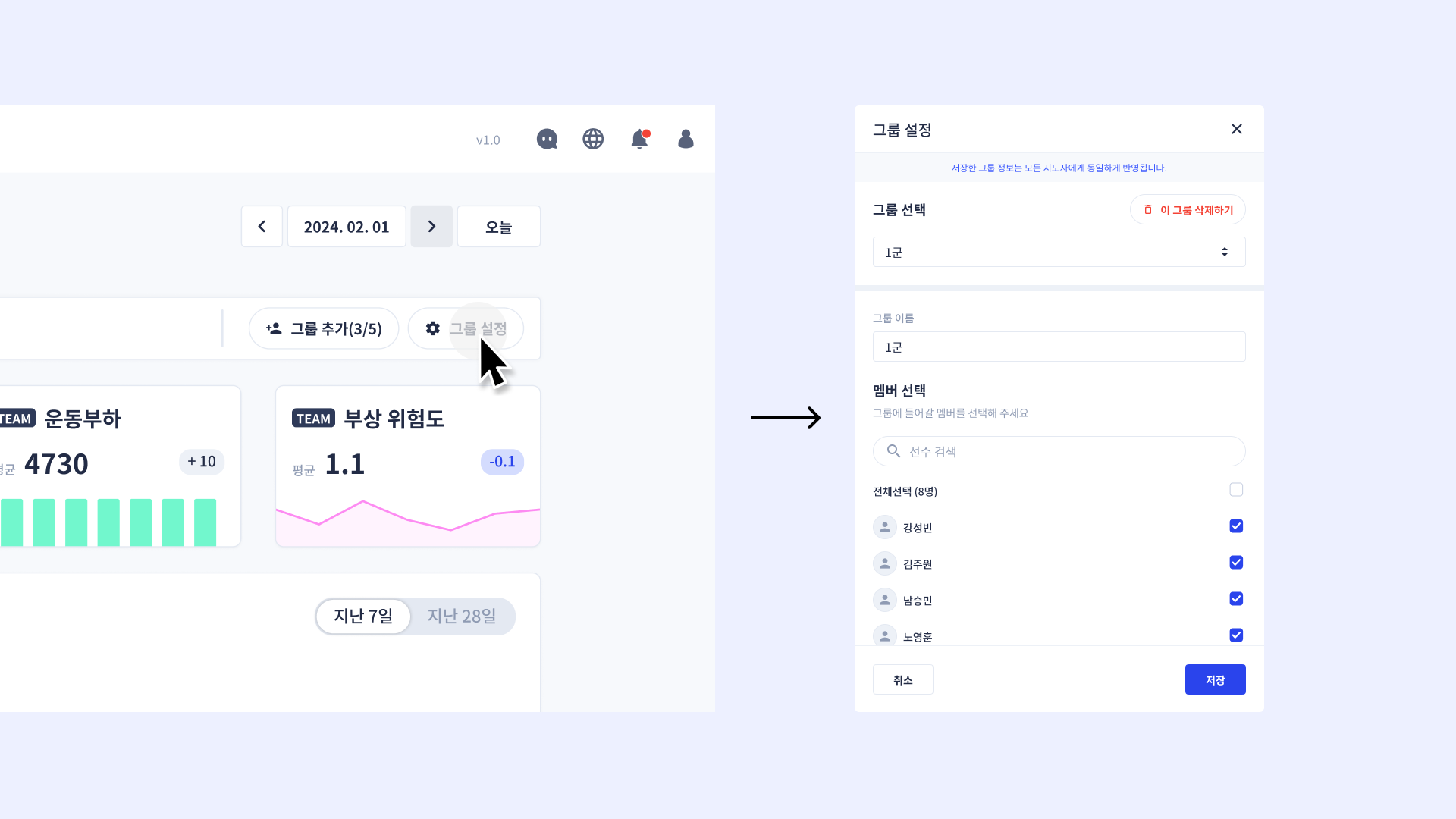 선수단 인원을 포지션이나 학년 등에 따라 그룹으로 관리해 보세요!